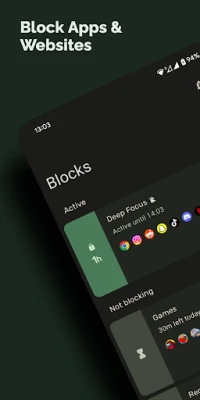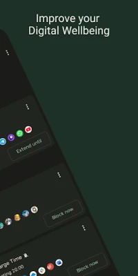 Block is an easy-to-use Android application that improves your self-control by blocking or limiting your app usage and giving you insight into how your time is spent on your phone. Whether you need to focus on your 🎓 study, don't want to get distracted at 💼 work, can't go to 🛌 sleep at night, or want to be more 👥 social, this app can help you out.