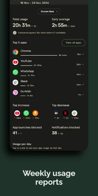 📊 Get weekly usage reports. View trends in your digital wellbeing.