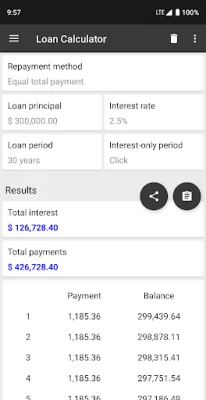 • You can calculate the total interest and total payments by entering the loan principal and interest rate.