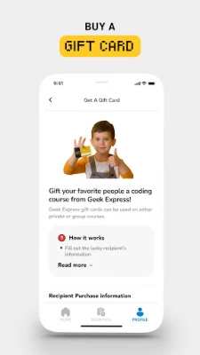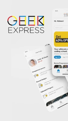 Why the Geek Express app? - Enroll your child in accredited online coding courses - Keep track of your child’s learning progress - Build your child’s digital portfolio and share all their completed projects - Stay up-to-date on all things Geek - Benefit from valuable discounts