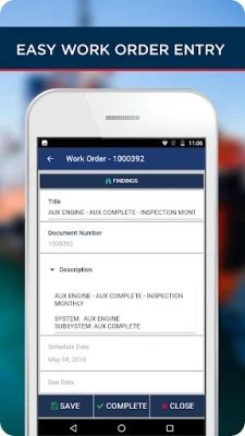 • Supports work order completions, audit inspections, checklist-based inspections, on-board meetings and drills, audits, sign-on and sign-off crew and document delivery