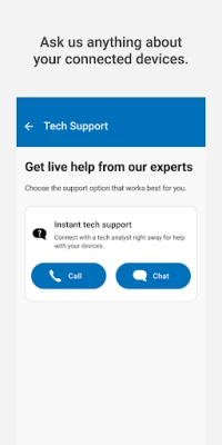 • Connect instantly with our U.S.-based tech pros via call or chat for support of all your connected devices, such as smartphones, printers, routers, game consoles, smart TVs, and thermostats.