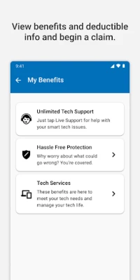 The Pocket Geek® Home app lets you manage your plan and view your benefits. It also provides eligible customers access to live tech support, claims filing, and additional services.