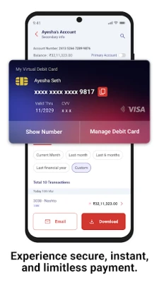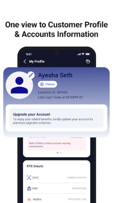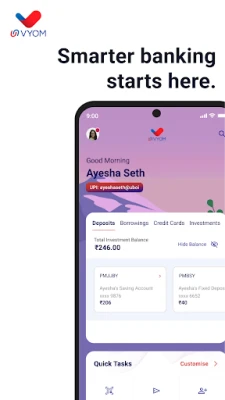 New Vyom enhances your banking journey with a redesigned homepage featuring dynamic backgrounds and a reimagined payment experience, making all payment methods accessible from one central point. Enjoy the ease of updating your profile, viewing relationship managers, and accessing account details with a single click through the unified customer profile & accounts view. Seamlessly aggregate and manage your accounts with the Account Aggregator, providing a consolidated view of your balances. Receive personalized offers and nudges to ensure you never miss out on exclusive deals.